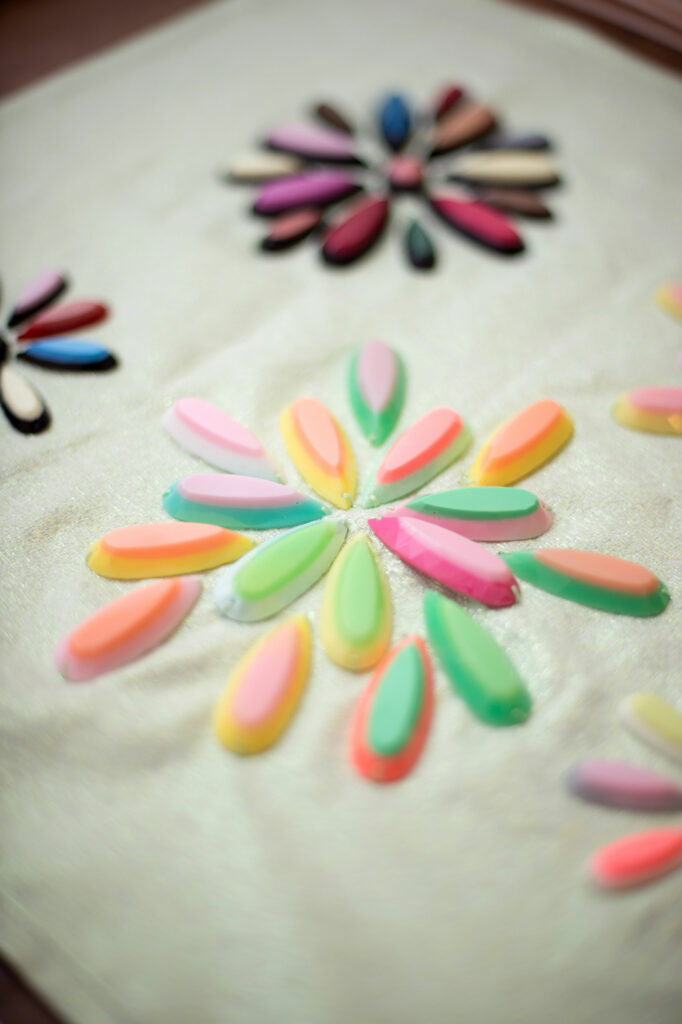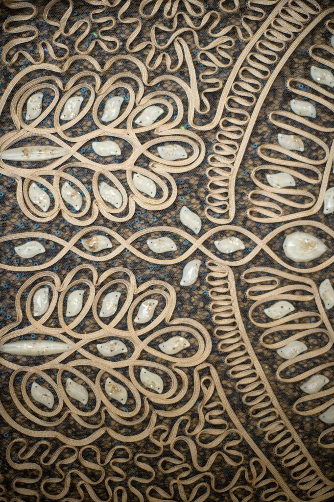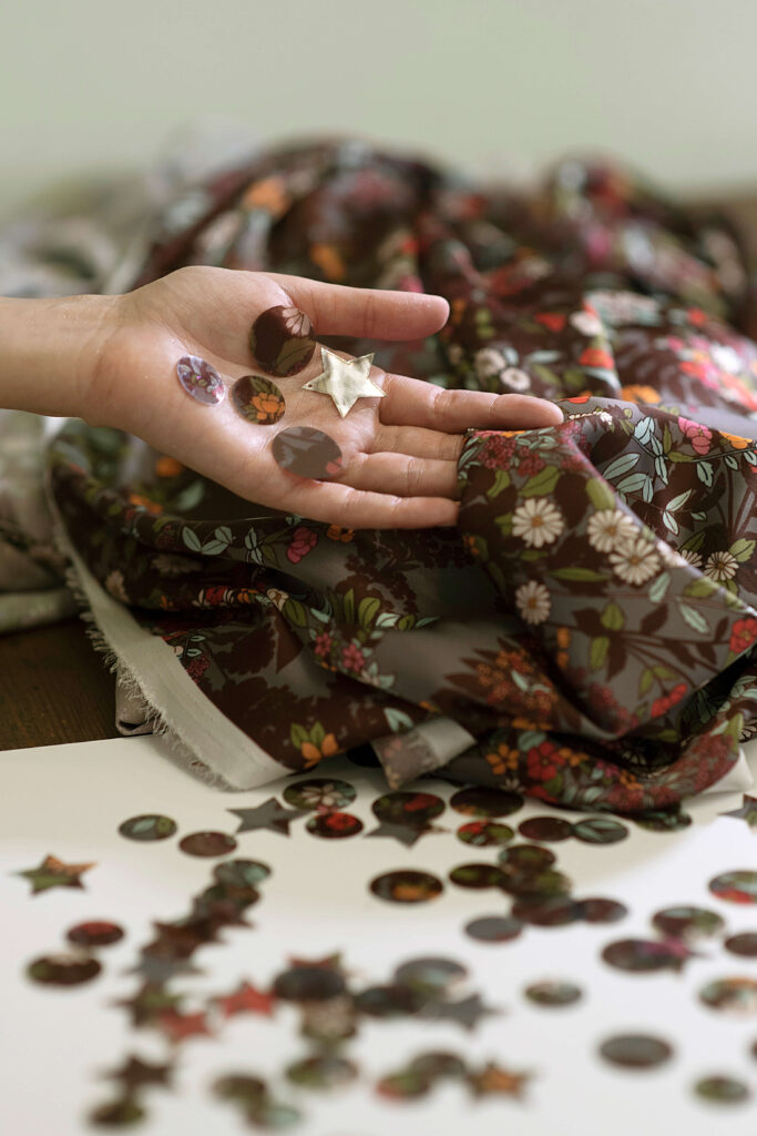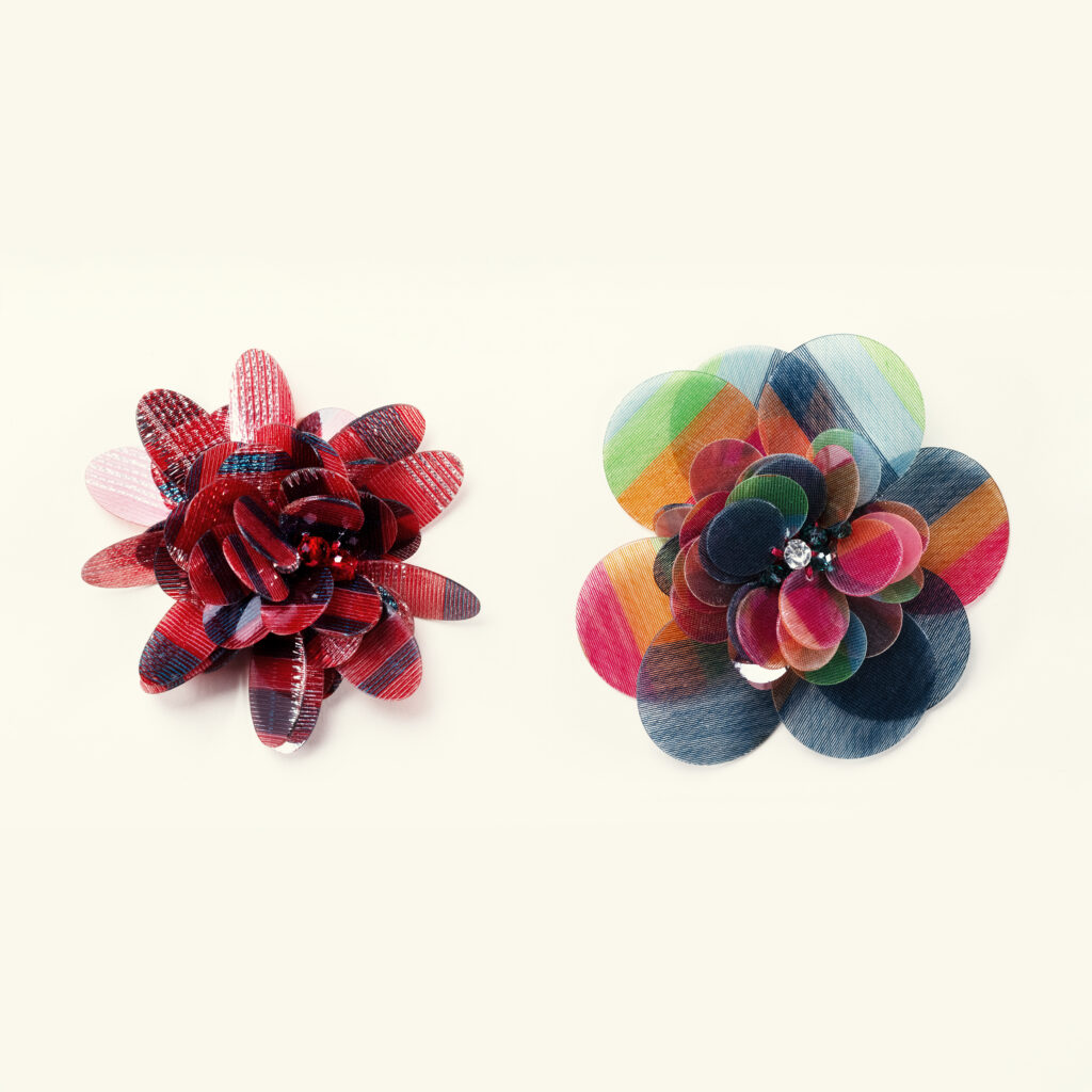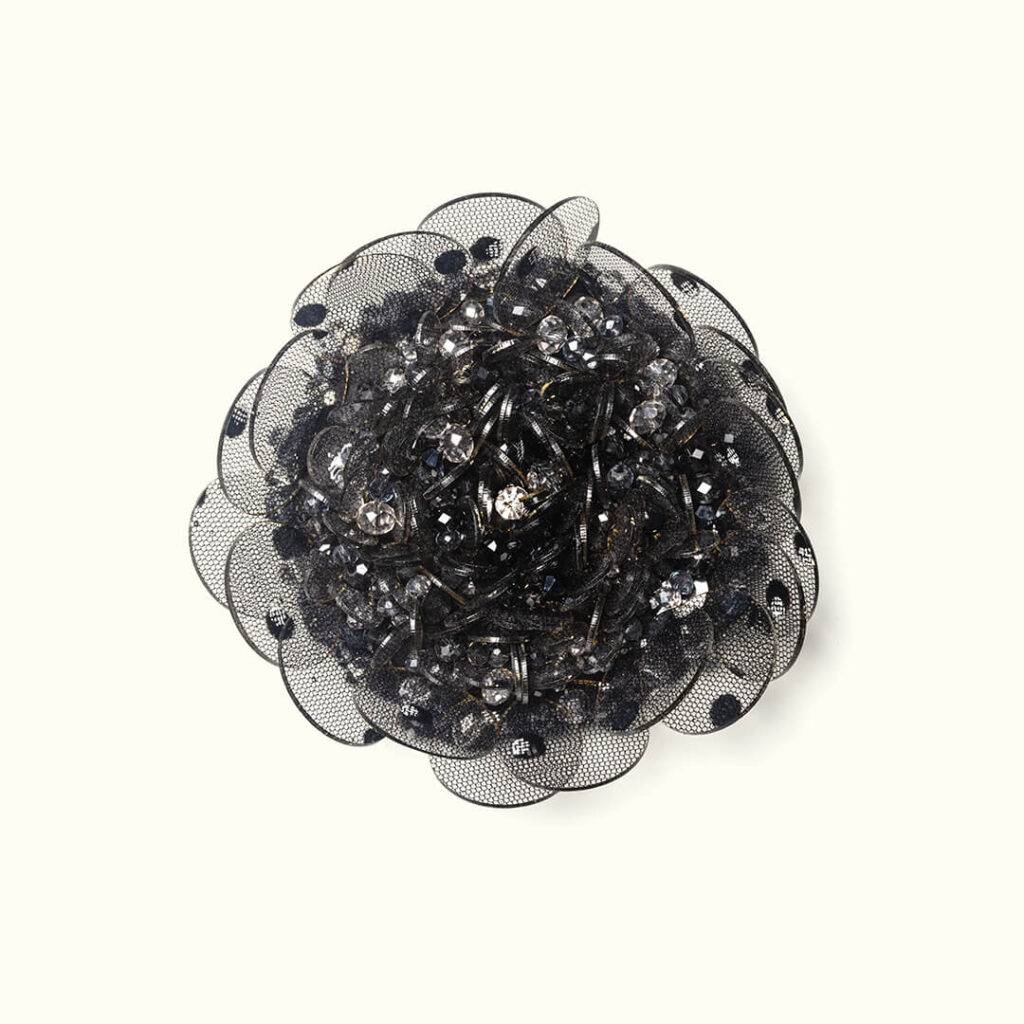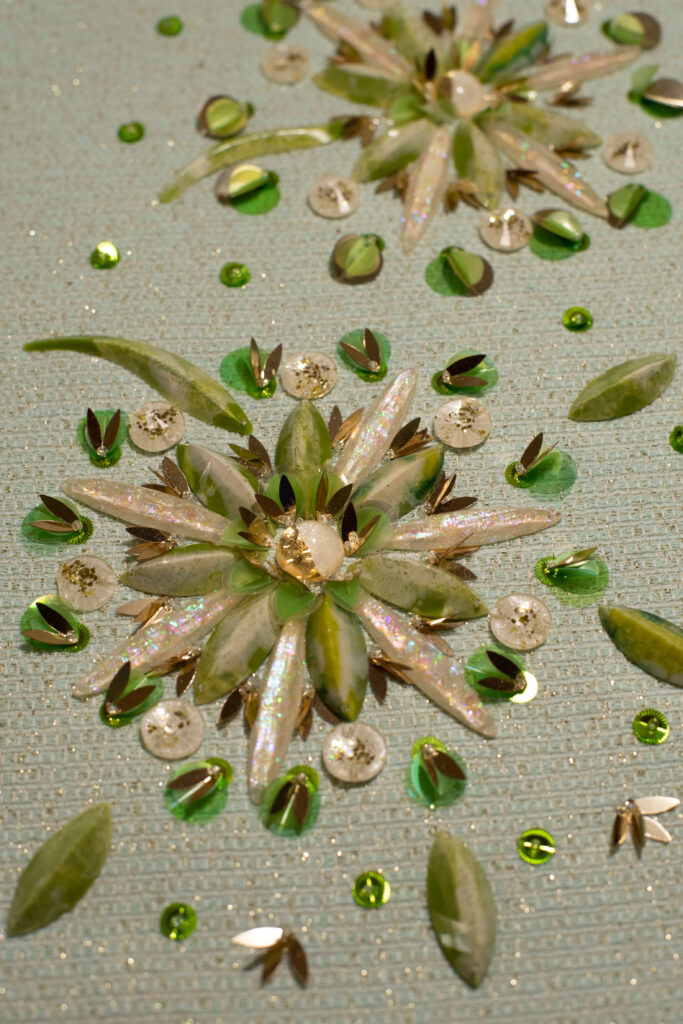 Producto estrella de nuestras colecciones exclusivas, estas lentejuelas resinadas son de una gran delicadeza y adornarán con elegancia tus prendas más exquisitas. Esta técnica patentada por nuestro taller nos permite crear pétalos de la forma y el tamaño que desees, incluso a partir de tejidos de tus propias colecciones. Una pieza verdaderamente única.